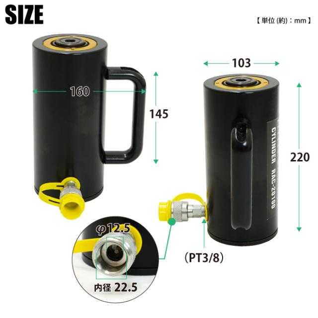 アルミ 油圧シリンダー 20トン 軽量 黒 ブラック KIKAIYA
