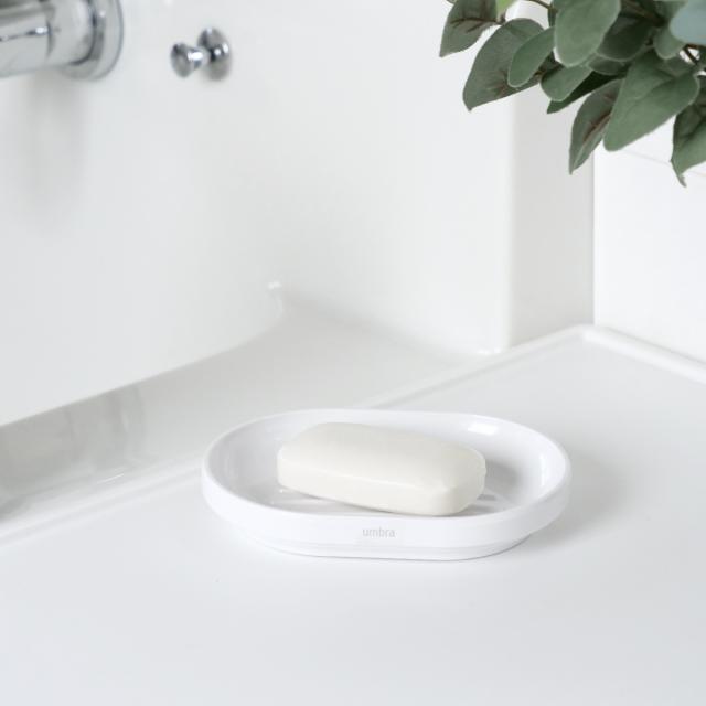 ツヤのある質感に台座があるようなデザインが高級感を漂わせるアンブラのソープディッシュです。美しい曲線とちょうど良い深さのエッジによって、固形石けんをしっかりキープします。