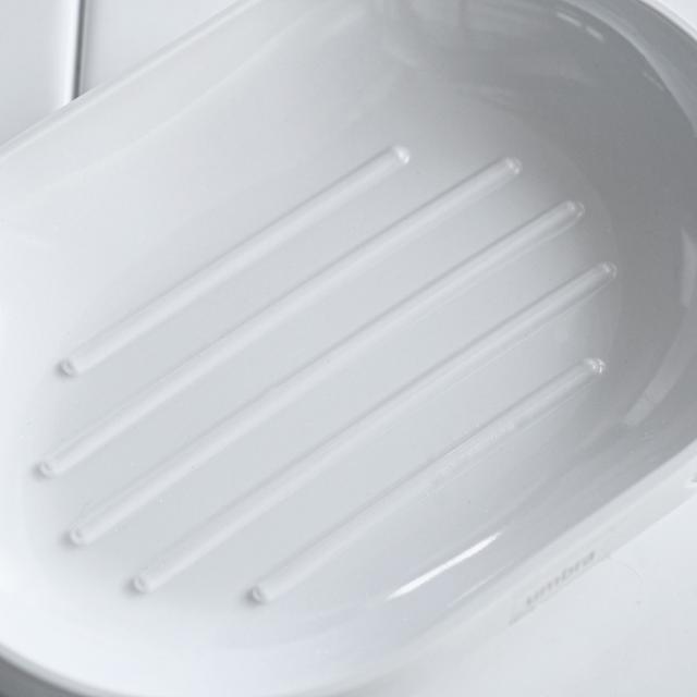 皿部分に配置された筋状の突起がせっけんを浮かし接地面を少なくすることで、石鹸の水分を落として清潔でキレイに乾かすことができます。
