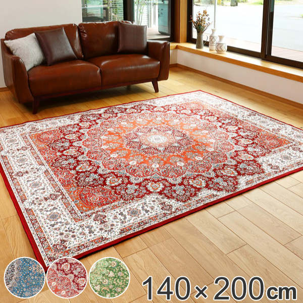 小さな模様も細部までしっかり表現した、まるで高級絨毯のようなデザインの転写プリントラグです。高級絨毯にあこがれるけど汚れた時やお手入れが大変。プリントラグなら高級絨毯の雰囲気を楽しみつつ丸洗いができるのでお子様がいるご家庭でも安心してお使いいただけます。