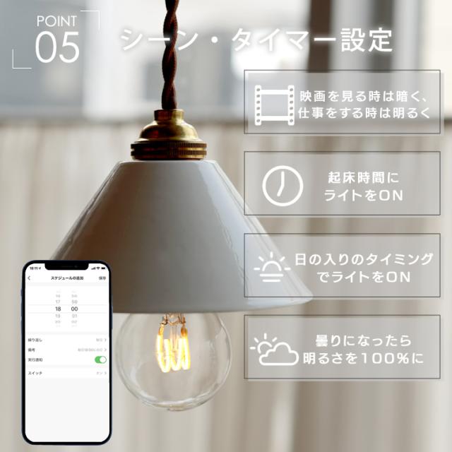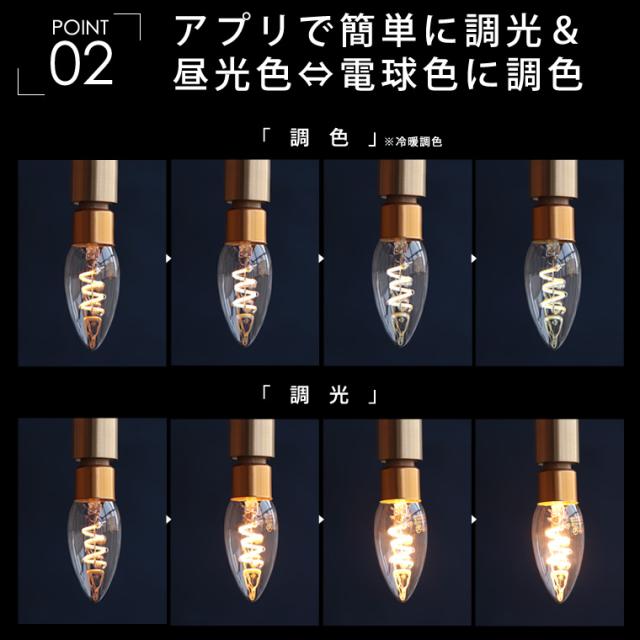 おしゃれなエジソン電球の見た目はそのままに、昼光色⇔電球色の冷暖調色ができる機能が追加され、