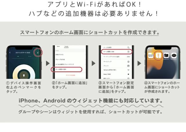 スマホから電球の調光・調色ができたり、外出先からランプの操作ができます。