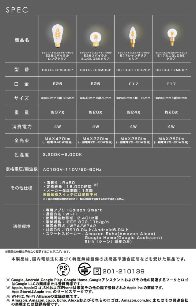 | 商品名 | E17 エジソンバルブLEDスマート デュオ E17 EDISON BULB LED SMART DUO |