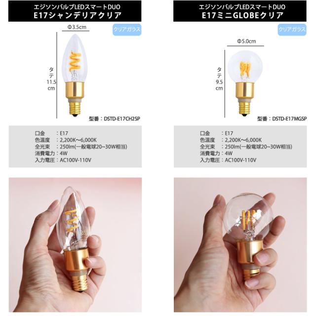 | 種類 | ・E17シャンデリアクリア[型番: DSTD-E17CH2SP] ・E1ミニGLOBEクリア[型番: DSTD-E17MGSP] |
