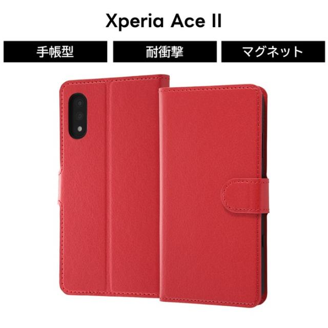 Xperia Ace II 耐衝撃 手帳型ケース シンプル マグネット スリープ機能対応 レッド カード収納
