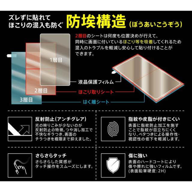 | 素材 | シリコン膜(液晶保護フィルム吸着面)、PET(液晶保護フィルム表面) |