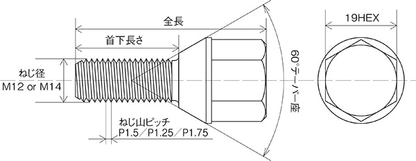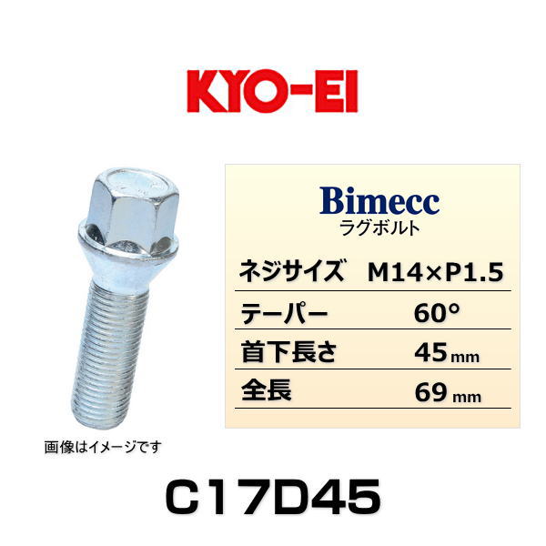 KYO-EI 協永産業 Bimecc ビメック C17D45 ラグボルト輸入車用 17HEX M14×P1.5 首下長さ:45mm 全長:69mm テーパー座:60° 1個