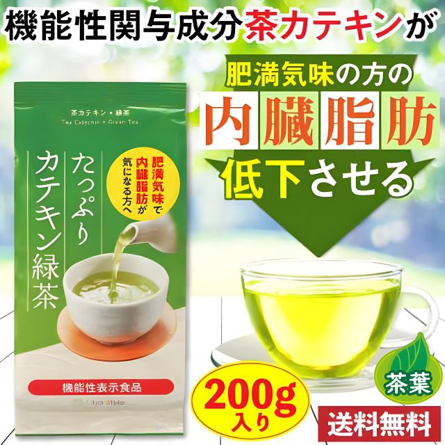 機能性表示食品 たっぷりカテキン緑茶 200g 約33日分 1日2杯、一杯あたり茶葉3g 内臓脂肪 茶葉 急須で淹れるお茶 メール便 お茶 緑茶 日本茶 静岡茶 深蒸し茶 茶カテキン ダイエット 健康茶 お茶の葉 脂肪 agesugi_sgu