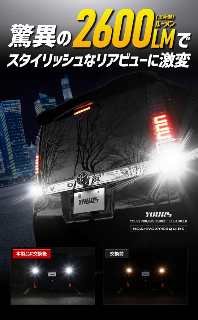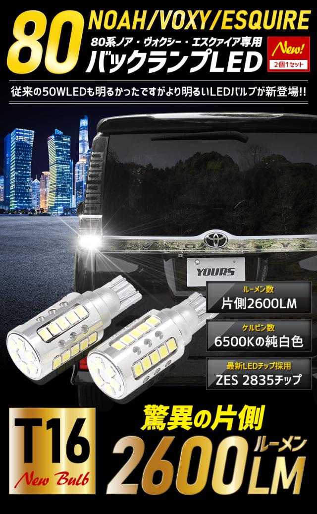 [只今タイムセール開催中]80系ノア ヴォクシー エスクァイア 専用 バックランプLED T16 2600LM 2個1セット バックライト NOAH VOXY 6500K トヨタ ZESチップ リア テール