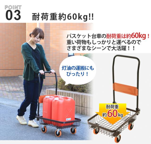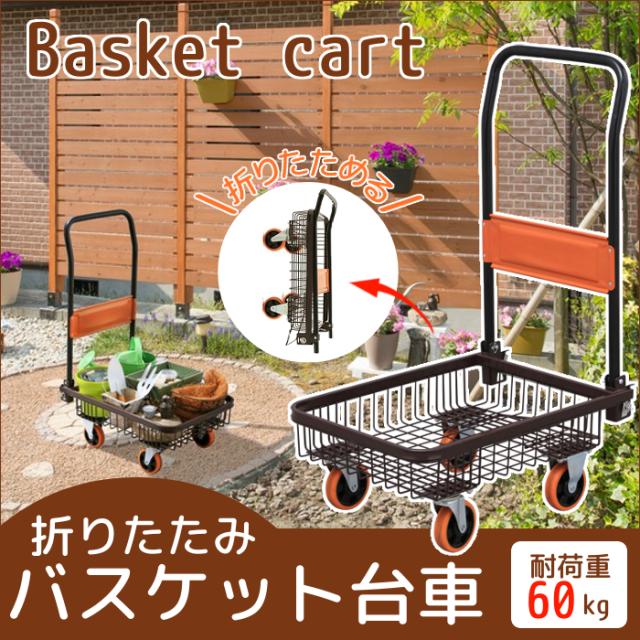 台車 折りたたみ コンパクト 耐荷重60kg バスケット 折りたたみバスケット台車 BKD-H001BK 送料無料 ガーデンカート 台車 ワゴン 運搬 カゴ 折りたたみ台車 軽量 灯油缶 ゴミ出し 新聞 オフィス 家庭用 業務用 持ち運び 完成品 レジャー アウトドア
