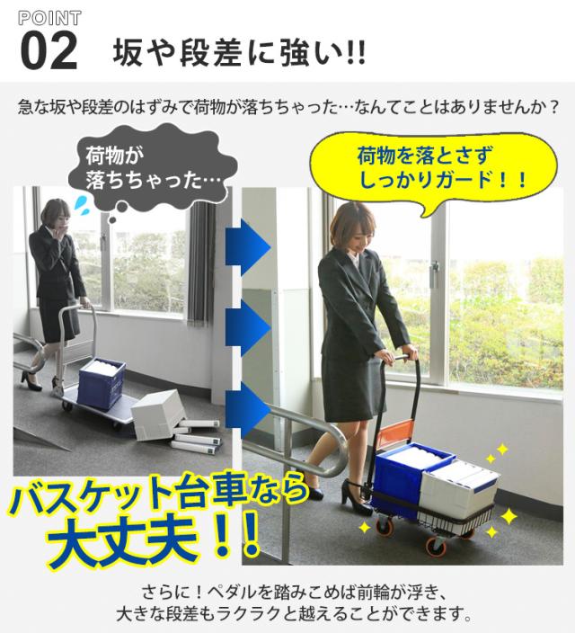 - 自転車の後ろカゴに乗せて目的地まで持って行って使ってます。50kgくらいは載せてますが異常なしです。 何も載せていない状態で急いで押す時は、軽いので前輪が浮くことがありますが、ゆっくり押せば問題ないです。