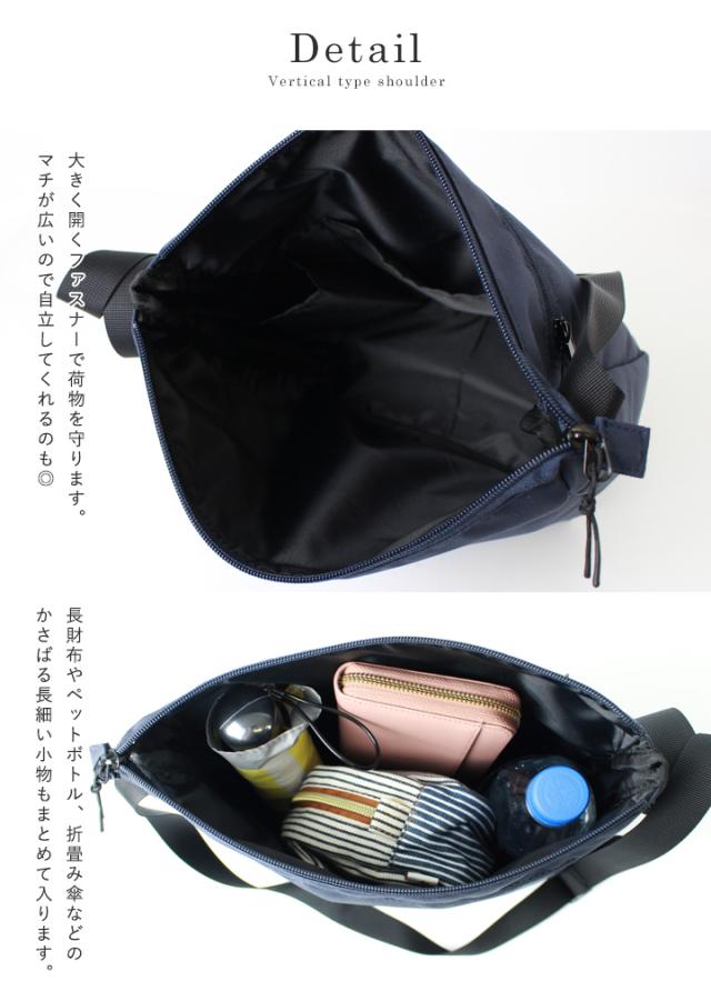 ペットボトルや長財布などの長細い小物が一緒に入るので