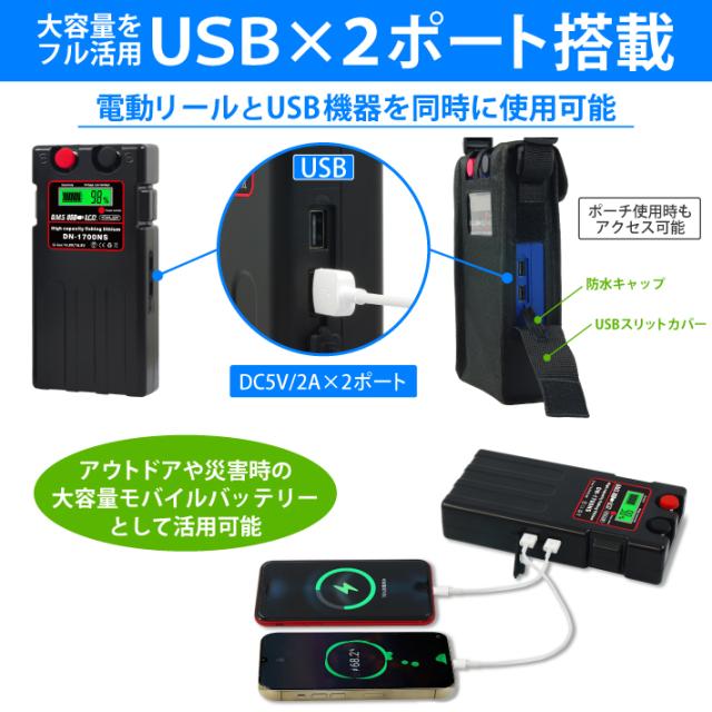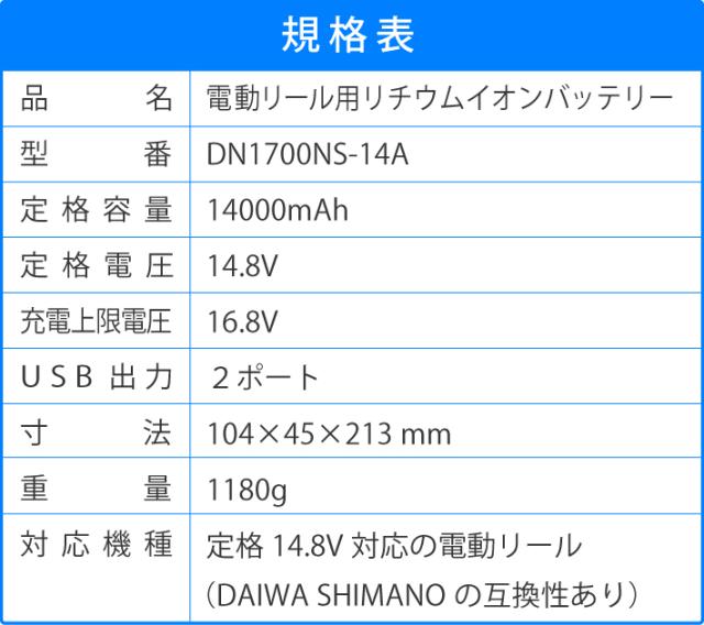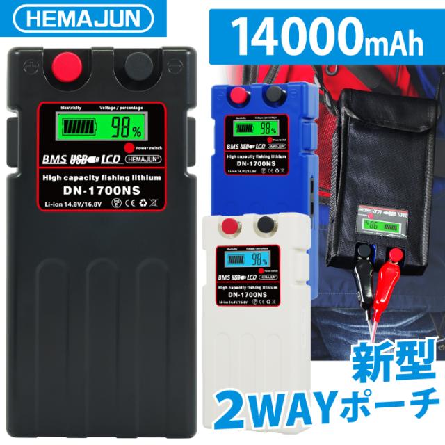 【1年保証】【公式】HEMAJUN(ヘマジュン)電動リールバッテリー 14000mAh 充電器 収納カバー ベルトセット DAIWA SHIMANOと互換性あり DN-1700NS 電動リール用 バッテリー 115-02