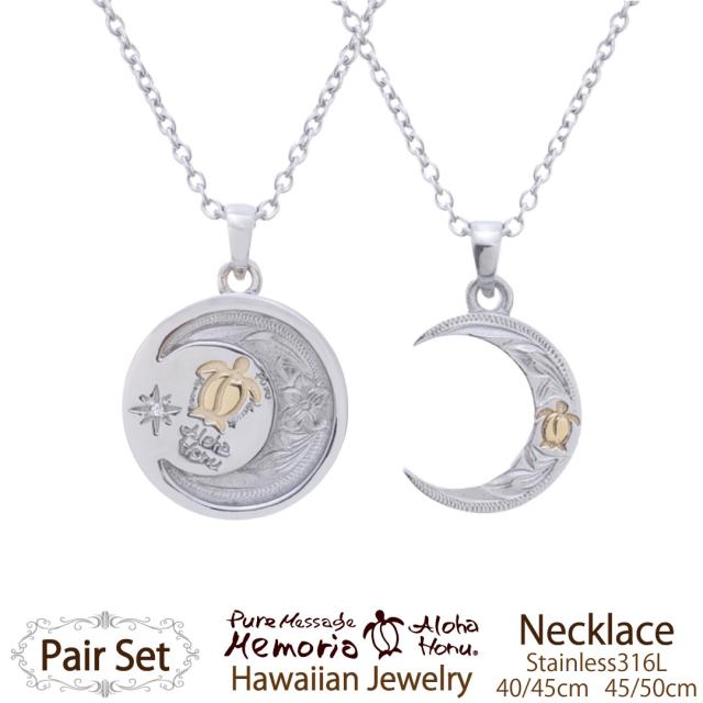 ハワイアンジュエリー ネックレス ペアネックレス ステンレス 金属アレルギー対応 ペアハワイアンジュエリー ハワイアン ウミガメ ホヌ プルメリア 波 ヘリテイジ メンズ レディース アクセサリー