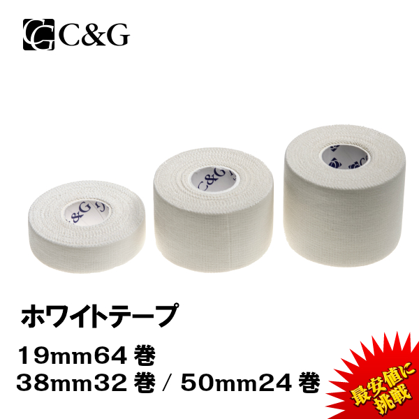 固定テープ 非伸縮 白 19mm × 12m 64巻/箱 38mm × 12m 32巻/箱 50mm × 12m 24巻/箱 C&G ホワイトテープ 送料無料 固定タイプ 非伸縮タイプ テーピング 固定テーピング 圧迫 指 膝