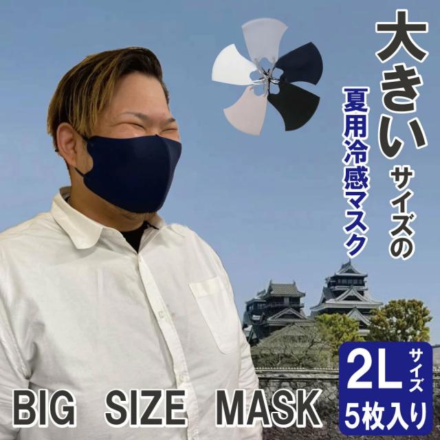 マスク 大きめサイズ 立体型マスク 冷感 2Lサイズ 5枚入り 送料無料 BIGマスク 冷感マスク 個別包装 接触冷感 スポーツ 洗える おしゃれなマスク 耳が痛くない 不織布 との二重マスクにも ジップケース入り 大人用 耳紐調整 Lサイズ