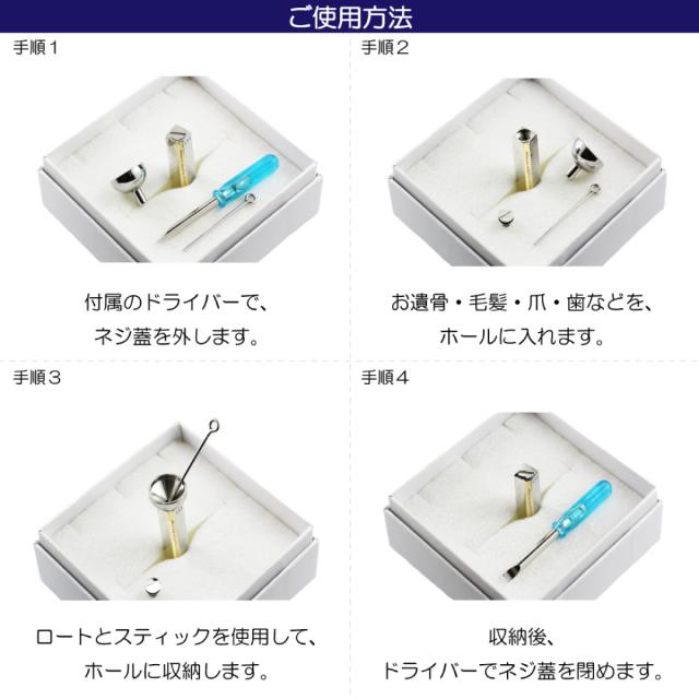 ネジ蓋を開けたホールに、遺骨・毛髪・爪・歯などを収納出来ます。