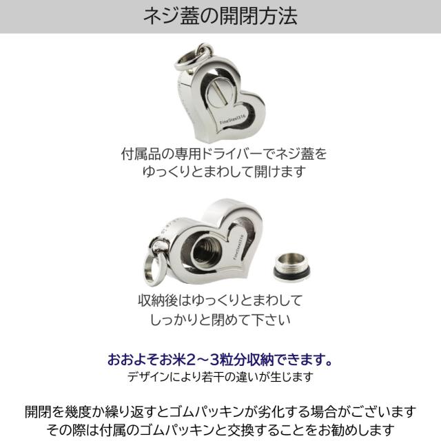 ペンダントの内部に、亡くなった大切な方やペットの遺骨・毛髪・爪・歯などを収納でき、