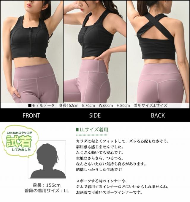 【メール便対応】フロントファスナーで着脱も楽々。ホールド感のあるタンクトップ型のブラトップ。