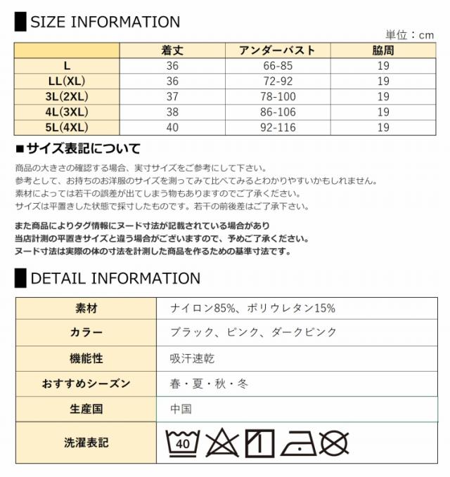 4L(3XL):着丈38 アンダーバスト86-106 脇周19