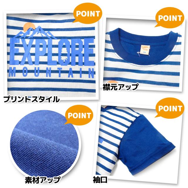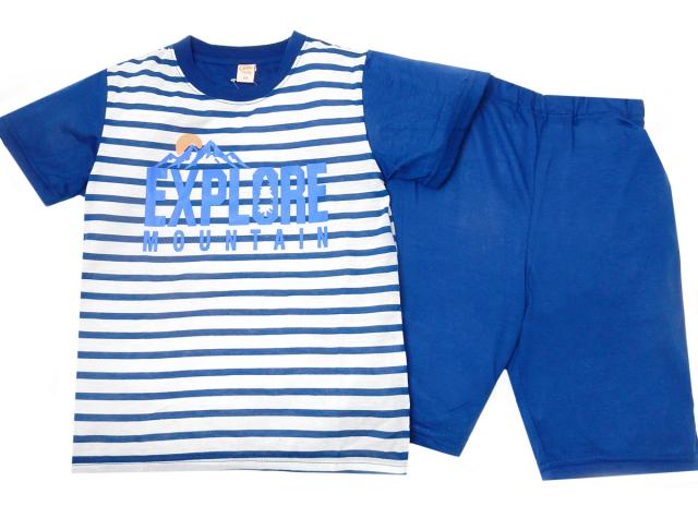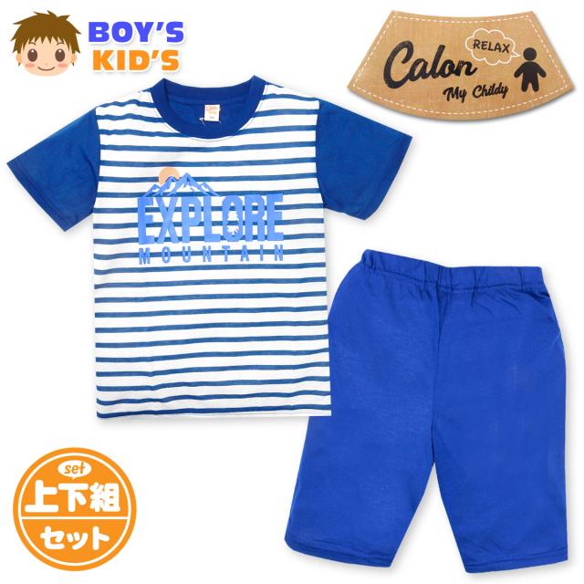 【送料無料】男児 キッズ 綿混 半袖 パジャマ ボーダー柄 ロゴ 上下組 子供服 男の子 120cm 130cm my-0021c【メール便対応】