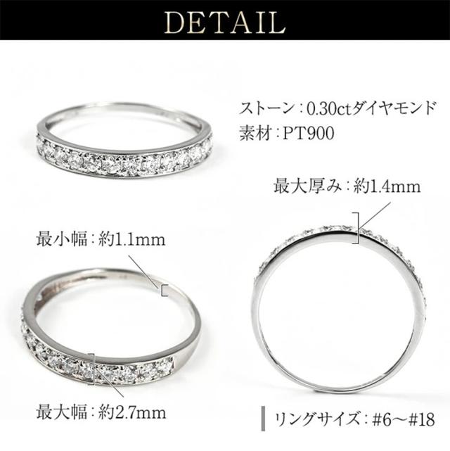【素材・商品サイズ】ストーン:ダイヤモンド0.3ct 最大幅:約2.7mm 最小幅:約1.1mm 最大厚み:約1.4mm 最小厚み:約0.7mm リングサイズ:6号~18号 金性:プラチナ PT900/18金 18Kからお選び頂けます。