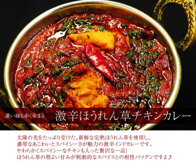 激辛ほうれん草チキンカレー 単品(250g)ほうれん草 チキン 本場激辛レシピで調合したスパイスが決め手 神戸アールティー