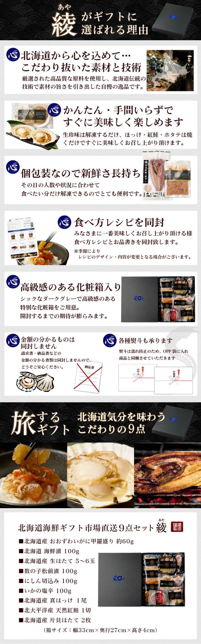 海鮮セット 北海道 海鮮 ギフト 詰め合わせ 北海道 お歳暮 9品「綾」 送料無料 卸売市場 福袋 海鮮福袋 お取り寄せ 内祝い お返し 誕生日 プレゼント お歳暮 御歳暮 食べ物 食品 グルメ 海鮮 海産 おつまみ 高級 詰め合わせ グルメ 御年始 冬ギフト