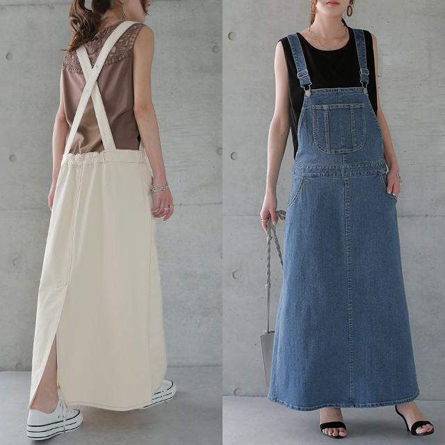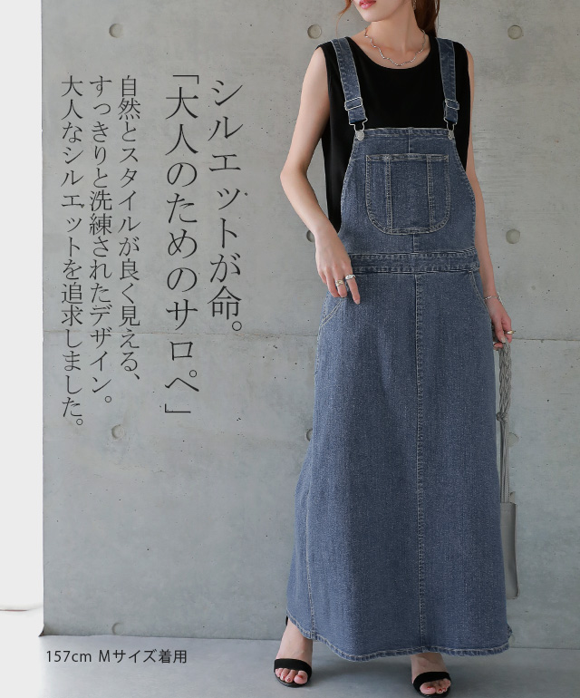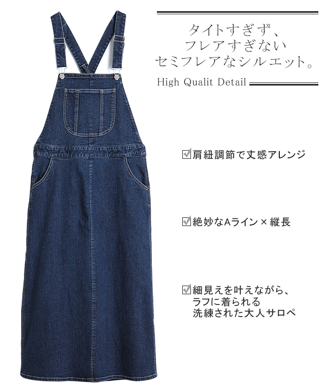 追究「大人シルエット」広がり過ぎない サロペスカート サロペット デニム スカート レディース サロペットスカート ワンピース ロングワンピ ジャンパースカート 体型カバー オーバーオール 大きいサイズ 冬 秋 秋新作