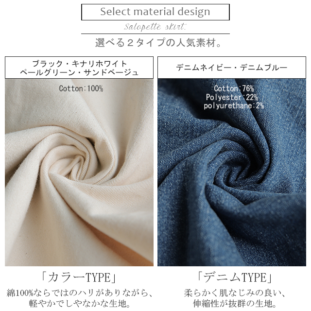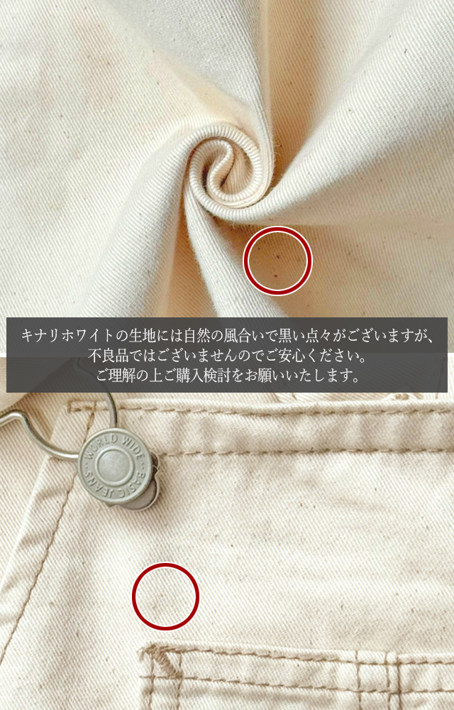 | 素材 | 【デニム】綿76% ポリエステル22% ポリウレタン2% 【カラー】綿100% |