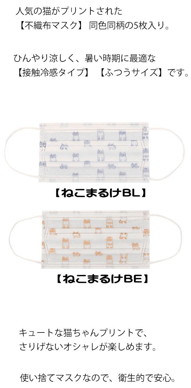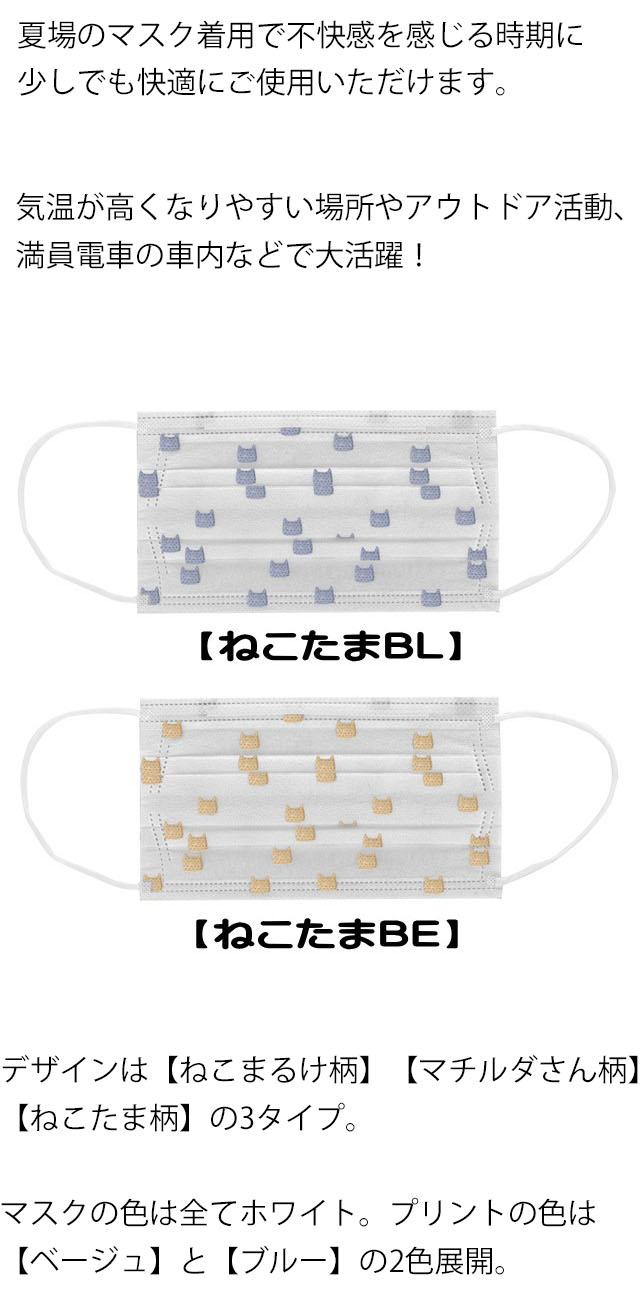不織布 マスク 接触冷感 夏用 涼しい 猫柄 柄 カラー 大人 5枚入 ネコ 三層構造 PM2.5 花粉 ウイルスカット