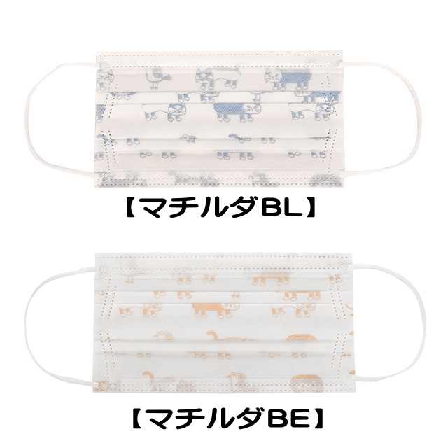 マスクの色は全てホワイト。プリントの色は【ベージュ】と【ブルー】の2色展開。