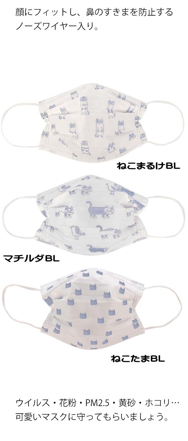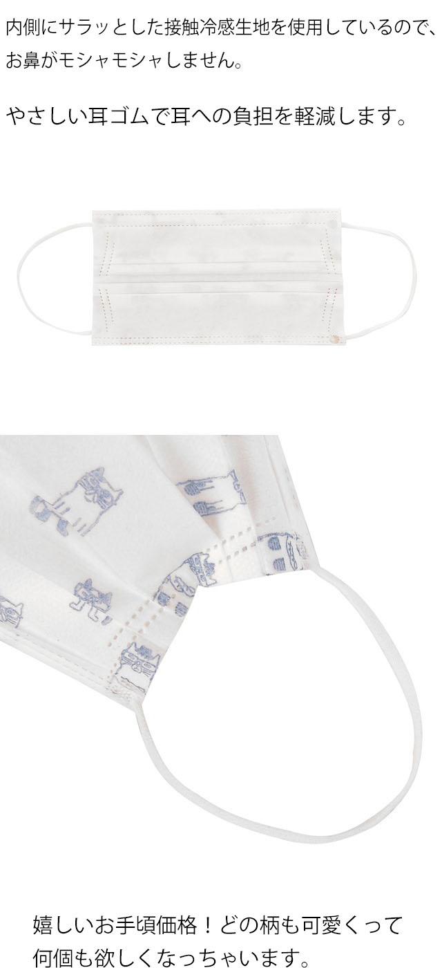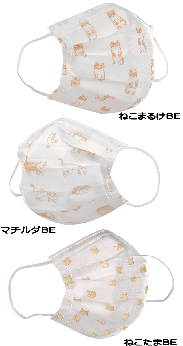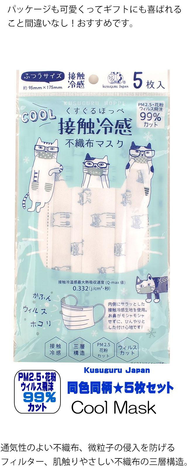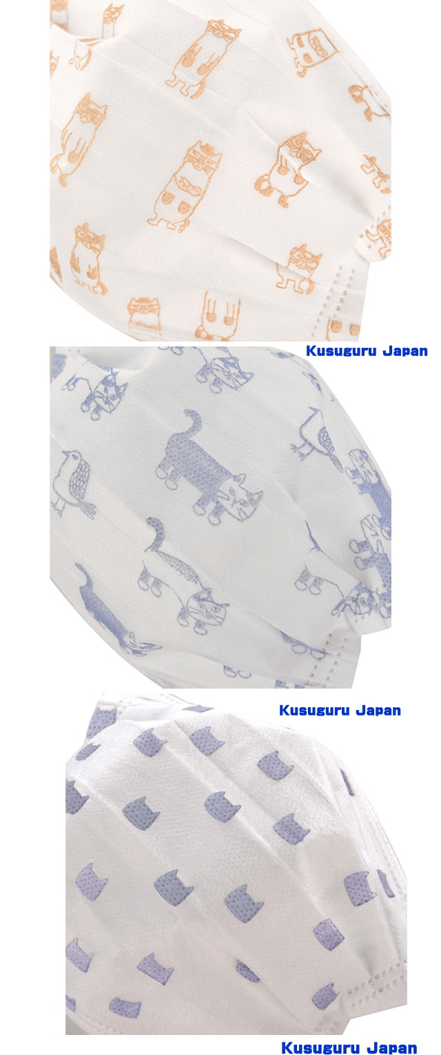 夏用 マスク!クスグルジャパンの人気の猫がプリントされた 【不織布マスク】 同色同柄の5枚入り。