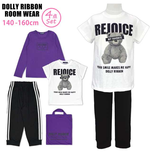 ドーリーリボン ルームウェア 4点 セット 子供パープル-白
