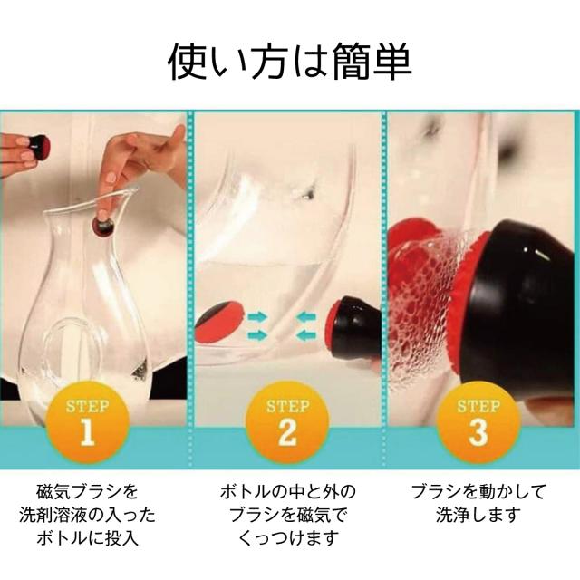 シンプルで使いやすく、ガラス製品に入れるだけで、磁気ハンドルがそれをつかみ、容器をこすって掃除するだけです。