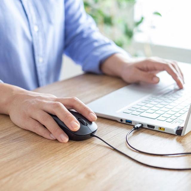USB Type-Cコネクタを搭載した有線マウス。静音タイプ。USB Type-Cコネクタを搭載したパソコンやタブレットで使用できる、有線ブルーLEDマウスです。WindowsやMac、ChromeOSなどで使用できます。全てのスイッチに静音スイッチを採用しており、公共の場や会議中の操作などでの使用に便利です。差し込むだけで使える手間なし簡単接続です。面倒なソフトのインストールが不要です。<ご注意>※鏡など光を反射する素材や、ガラスなど透明な素材の上でご使用になると、カーソルがスムーズに動かない場合があります。また、規則正しいパターンの上ではトラッキング能力が低下する場合があります。