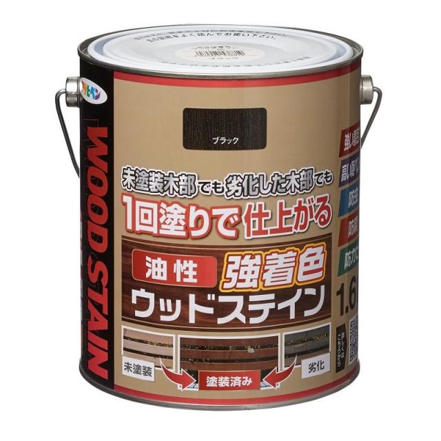 アサヒペン 屋外木部専用塗料 油性強着色ウッドステイン 1.6L ブラック 【北海道・沖縄・離島配送不可】