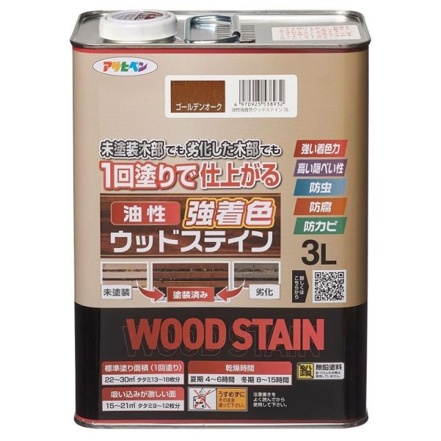 (まとめ買い)アサヒペン 屋外木部専用塗料 油性強着色ウッドステイン 3L ゴールデンオーク 〔×3〕 【北海道・沖縄・離島配送不可】