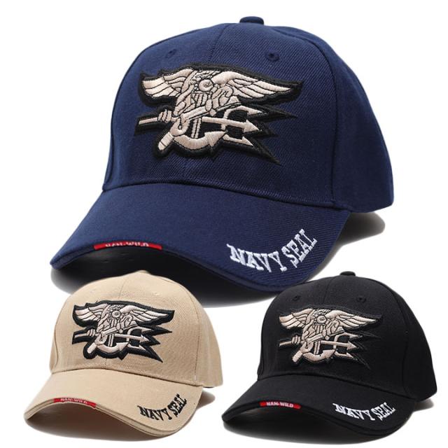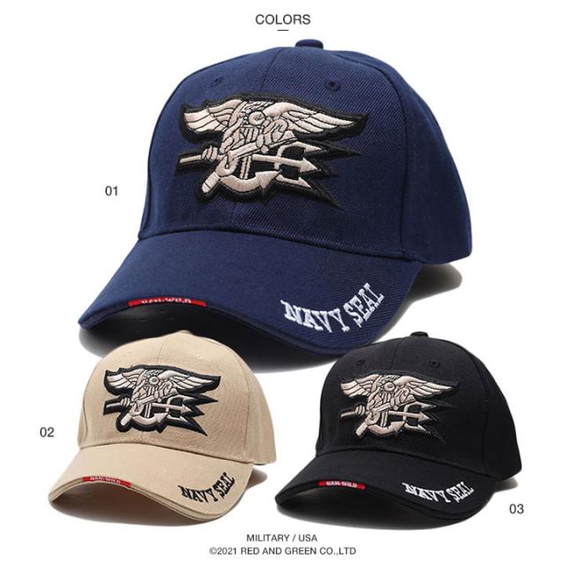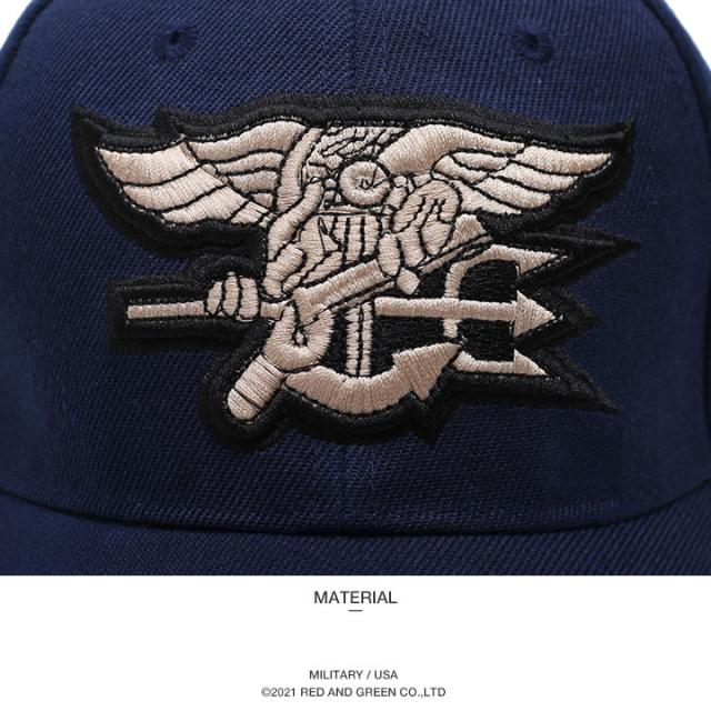 カーブバイザーと浅めのクラウンが特徴的なローキャップを採用し、フロントパネルセンターに3D立体の「アメリカ海軍特殊戦コマンド」エンブレム、バイザーとバックパネルに「NAVY SEAL」のロゴ刺繍を施したスタイリッシュな仕上がり。