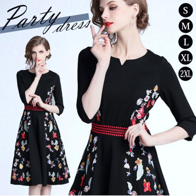 パーティードレス 通販 大きいサイズ 黒 ワンピース レディース s m l xl 2xl ワンピース 膝丈 結婚式 謝恩会 二次会 五分袖ワンピース パーティドレス 20代 30代 40代 春 夏 おしゃれ