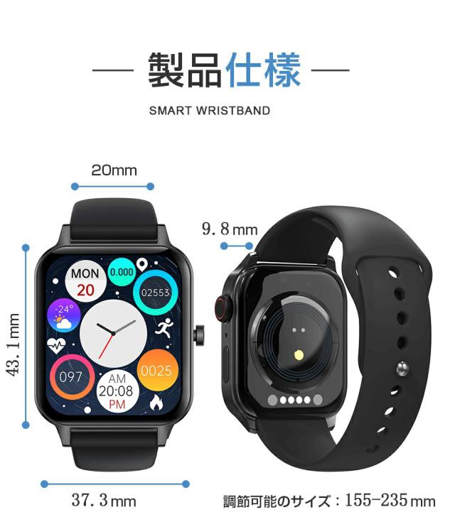 ※注意:このデバイスは医療機器ではありません。提供されたデータや情報はあくまで参考用です。 また、音声通話機能ですから、本商品は完全に防水ではありません。ボリュームとマイクが付いて、スマホと同じ水が穴から侵入の可能性があります。