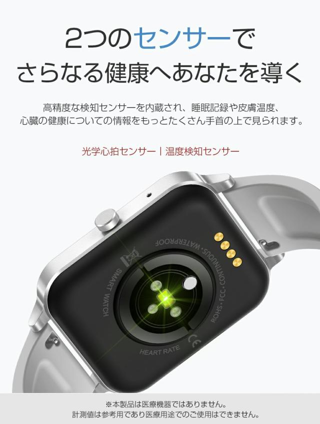 スマートウォッチ 通話機能付き 体温測定 日本製センサー 血圧測定 血中酸素 心拍測定 体温 血圧 防水 BLUETOOTH5.2 心拍計 アラーム 大画面 着信通知 睡眠検測 歩数計 腕時計