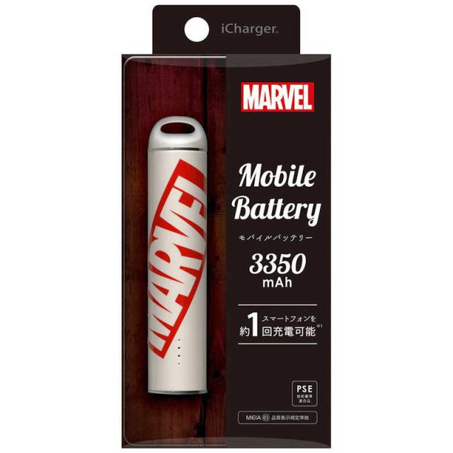 MARVELロゴデザインの3350mAhスティック型モバイルバッテリーです。