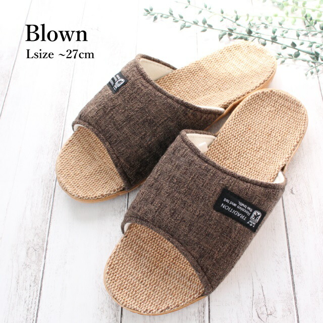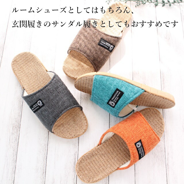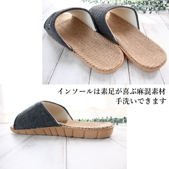 スリッパ 2足セット 夏用 洗える トラディション 麻混インソール サンダル風 ルームシューズ M/Lサイズ
