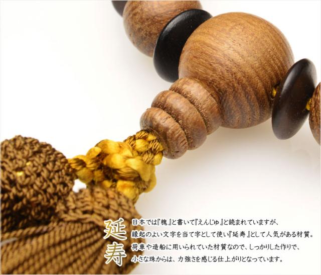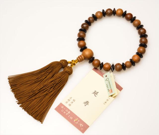 国産京念珠【高級唐木数珠・延寿縞黒檀仕立て】男性用数珠・正絹頭付房 化粧箱付 送料無料