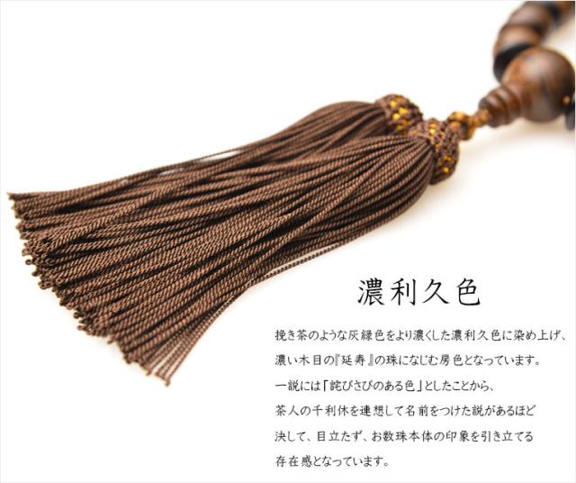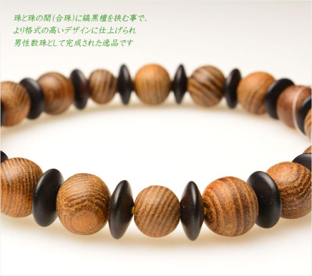 珠と珠の間(合珠)に縞黒檀を挟む事で、より格式の高いデザインに仕上げられ