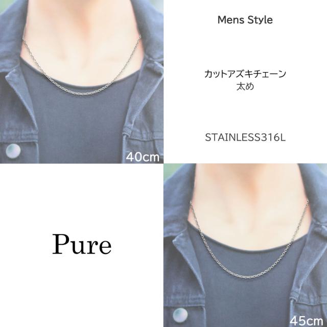 メンズネックレスチェーン レディースネックレスチェーン ステンレス アズキ チェーン 40cm 45cm シルバー メンズ レディース 金属アレルギー 対応