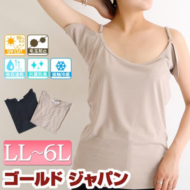 冬新作 大きいサイズレディース インナー 下着 インナーキャミソール 汗脇パッド付きインナー キャミソール キャミ わき汗 脇汗 接触冷感 吸水速乾 抗菌消臭 UV 抗ピル ストレッチ パッド 冷感 無地 春服 夏服 LL 2L 3L 4L 5L 6L ブラック 黒 ベージュ ゴールドジャパン