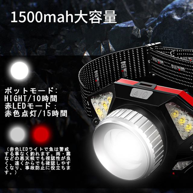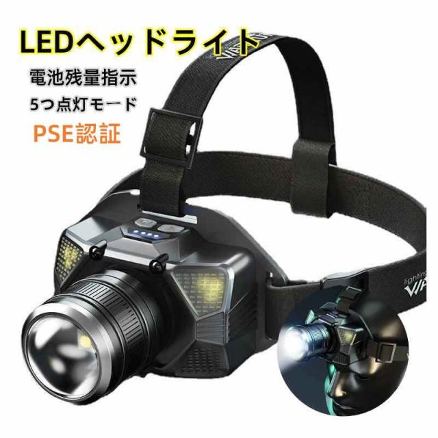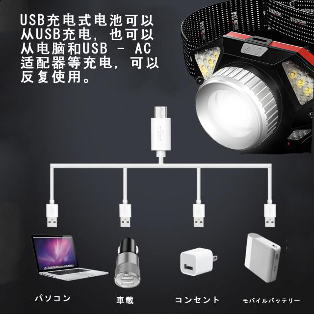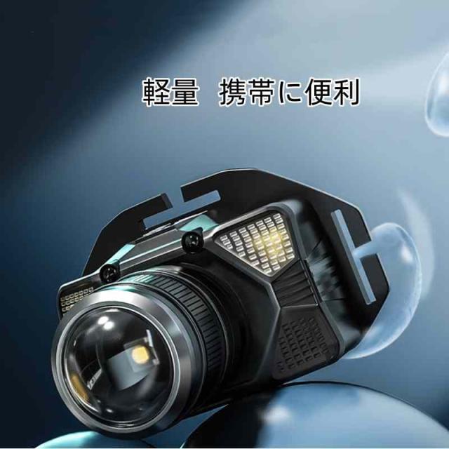 ヘッドライト 充電式 LED 明るい 5つランプビーズ 6つ点灯モード センサー/記憶機能付き 90°角度調整可能 電池残量指示 防水/防災 夜釣り/自転車/登山/キャンプ/散歩/ランニング/ジョギング/アウトドア作業ヘルメット 停電用 小型軽量へっとらいと 頭につける用ライト