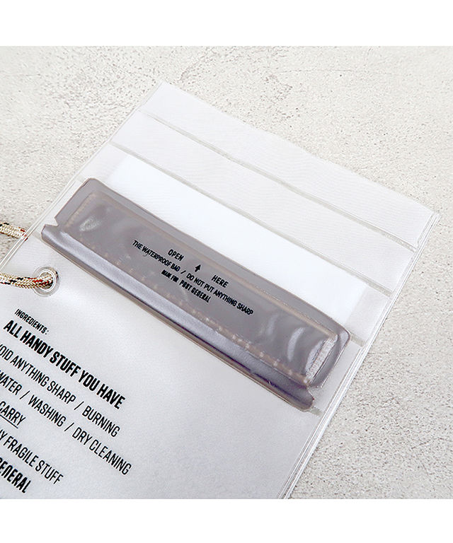 名前の通り、濡らしたくない携帯・小物類を水気から守る収納袋です。